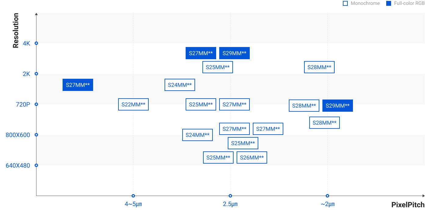 | S22MM22 | Monochrome | 1,280 x 720 | 4.95 | Common-cathode | MIPI D-PHY |