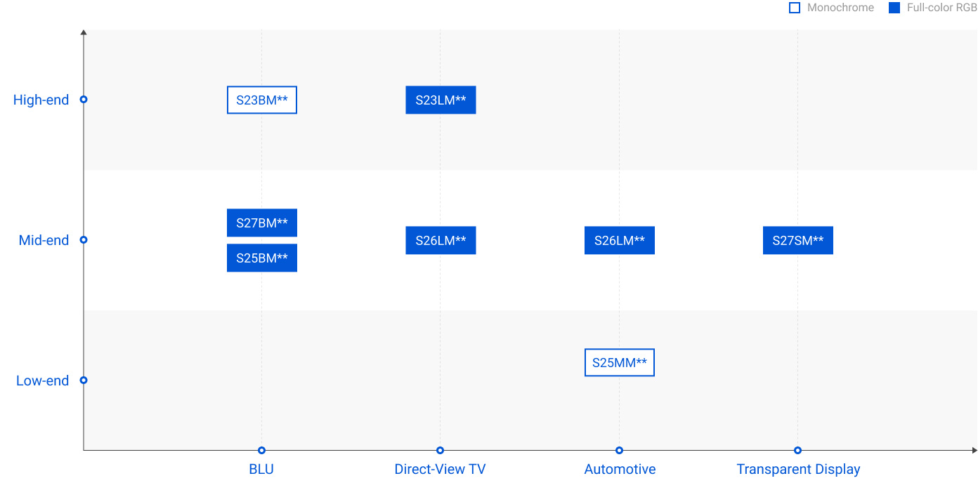 | S25LM** | Micro Pixel Driver | 100-ch RGB | Red: 18μA Green & Blue: 9μA |